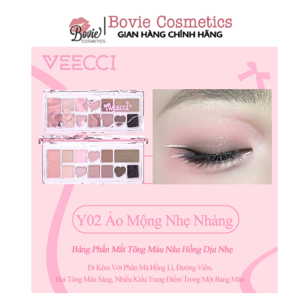 Y02 Ảo Mộng Nhẹ Nhàng:Bảng Phấn Mắt Tông Màu Nâu Hồng Dịu Nhẹ