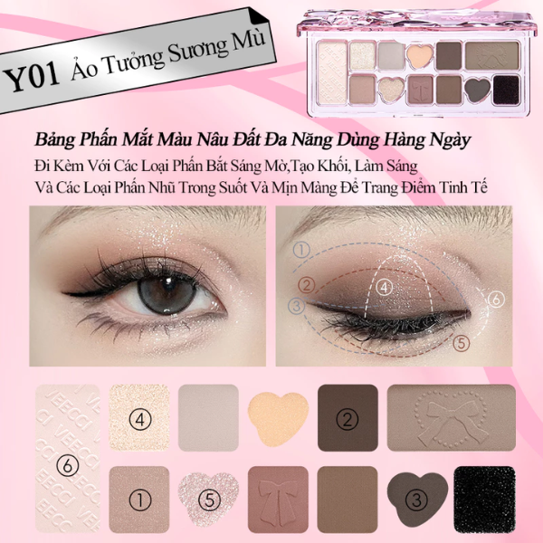 - Màu Sắc Sản Phẩm: Y01 Ảo Tưởng Sương Mù: Bảng Phấn Mắt Màu Nâu Đất Đa Năng Dùng Hàng Ngày