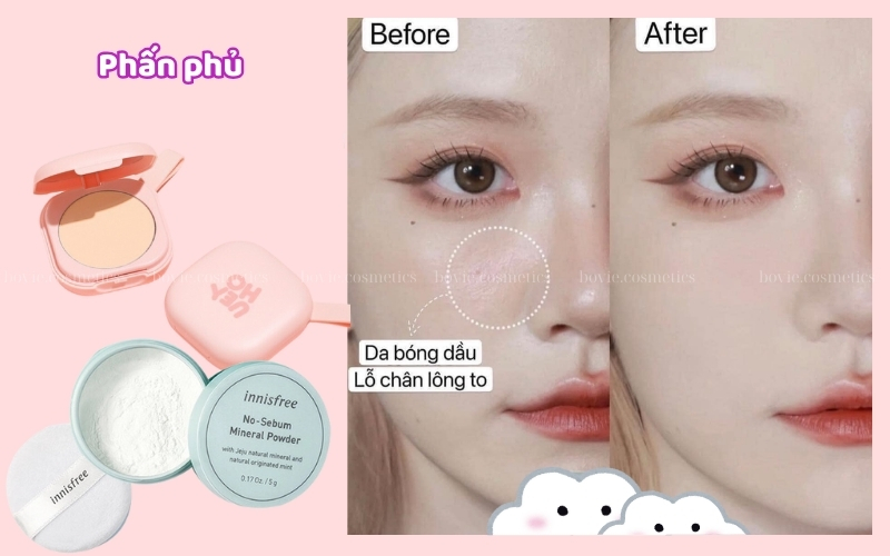 Phấn phủ là một sản phẩm nhất định phải có để khóa lớp trang điểm cũng như kiểm soát dầu nhờn cho da. Sản phẩm này hỗ trợ làm cho da trở nên mịn màng và trông chân thật hơn. Các bạn mới bắt đầu mà có làn da khô thì nên chọn phấn phủ dạng nén để giữ ẩm cho da, tránh tình trạng da bị khô và bong tróc, làm xấu đi lớp trang điểm. Còn với những nàng có làn da dầu thì nên chọn phấn phủ dạng bột vì khả năng thấm hút dầu tốt hơn, giữ cho lớp makeup lâu trôi. Phấn phủ không chỉ giúp khóa nền mà còn tạo hiệu ứng cho da trông tự nhiên, chân thực, không bóng nhờn. Tuy nhiên các bạn nhớ thoa đều tay và vừa đủ để tránh gây mốc nền nhé!