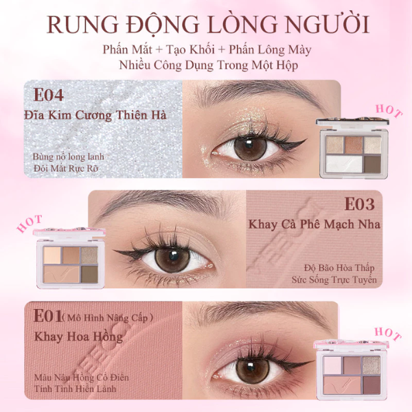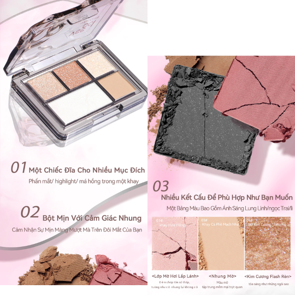 02#Khay Sỏi Ánh Trăng:Với Tông Màu Nâu Đất。 Nó Có Thể Được Sử Dụng Để Tạo Lớp Trang Điểm Mắt Chống Bọng Mắt Hàng Ngày Hoặc Có Thể Được Sử Dụng Để Tạo Lớp Trang Điểm Kiểu Châu Âu Và Mỹ.