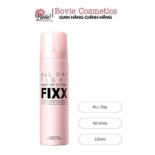 - xịt khóa make up All Day Tight Makeup Setting Fixx có thiết kế tiện lợi với dạng xịt hạt sương siêu mỏng, dễ dàng bao phủ đều lên bề mặt da chỉ trong một lần xịt.